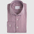 Die dunkelrot, weisse Struktur der Italienischen Weberei Canclini zeichnet sich durch die besondere Brillianz aus. Die raffinierte zweifarbige Struktur erscheint aus der Entfernung wie ein Uni. Dieser Artikel ist in unserem Classic Fit und mit Haikragen angefertigt.